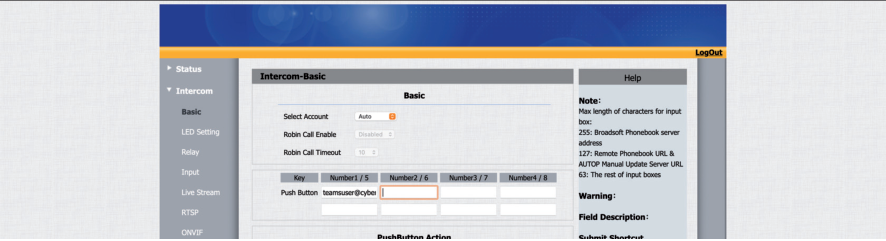 Section titled “Step 2: Configure Push Button (Call Destination)”The 'Intercom-Basic' menu will appear after login.